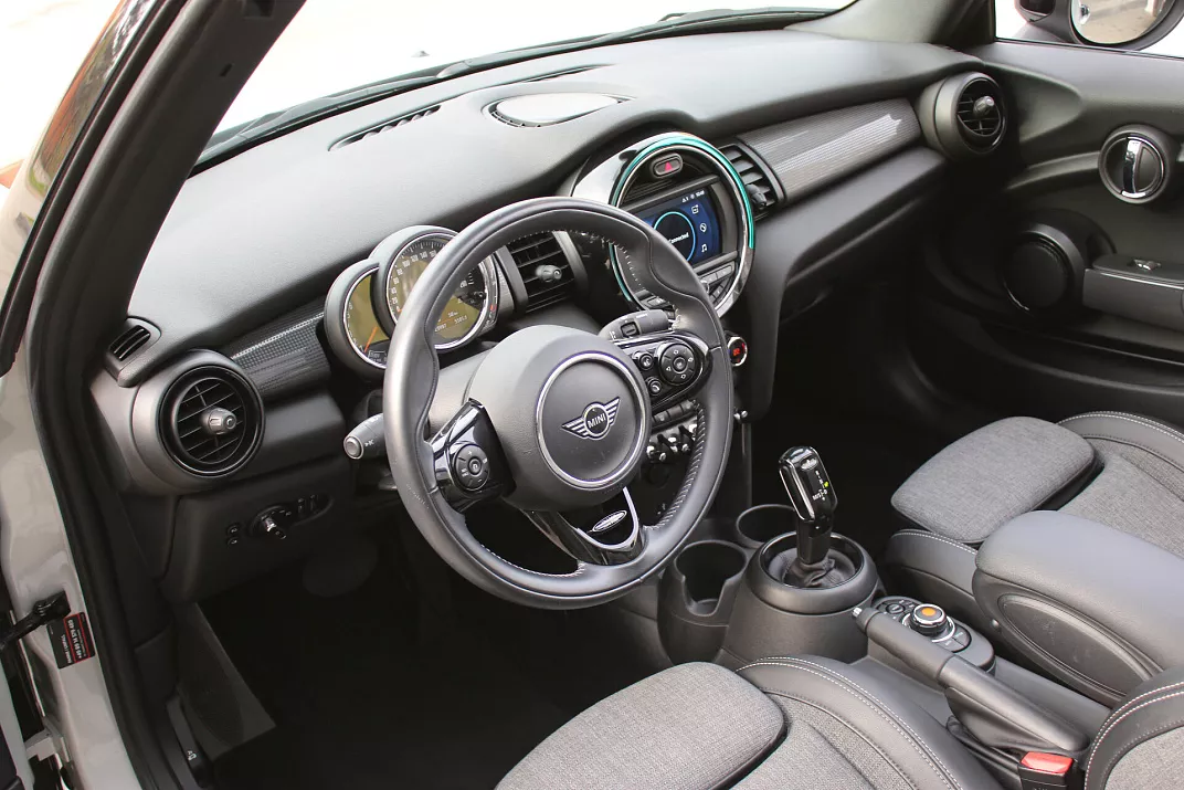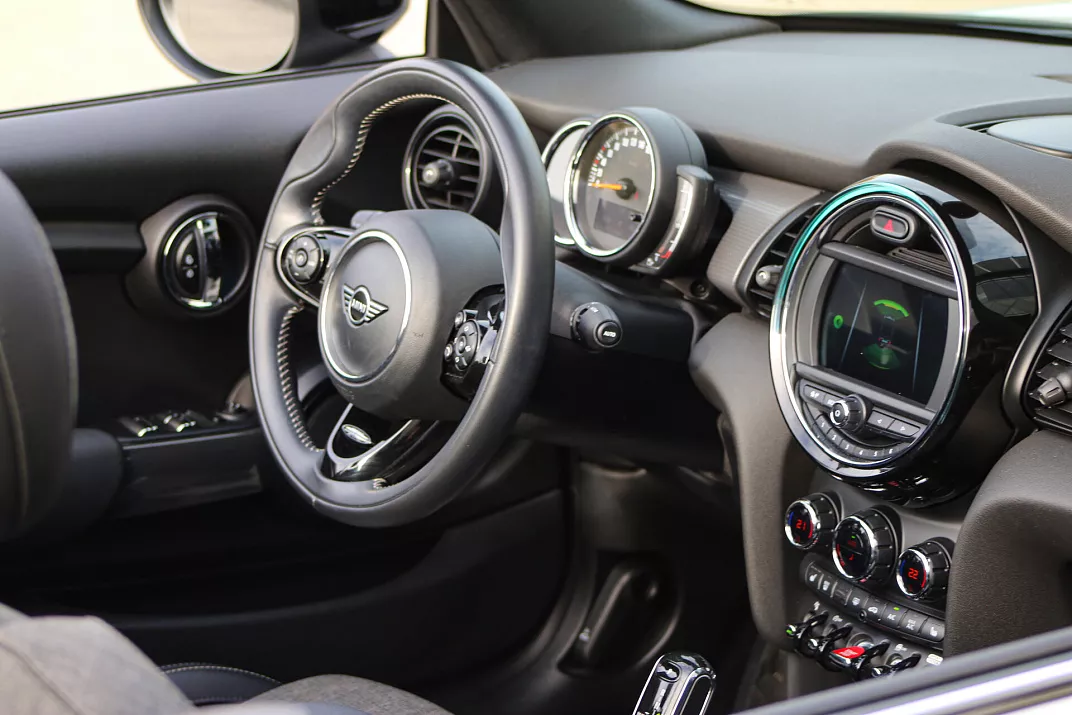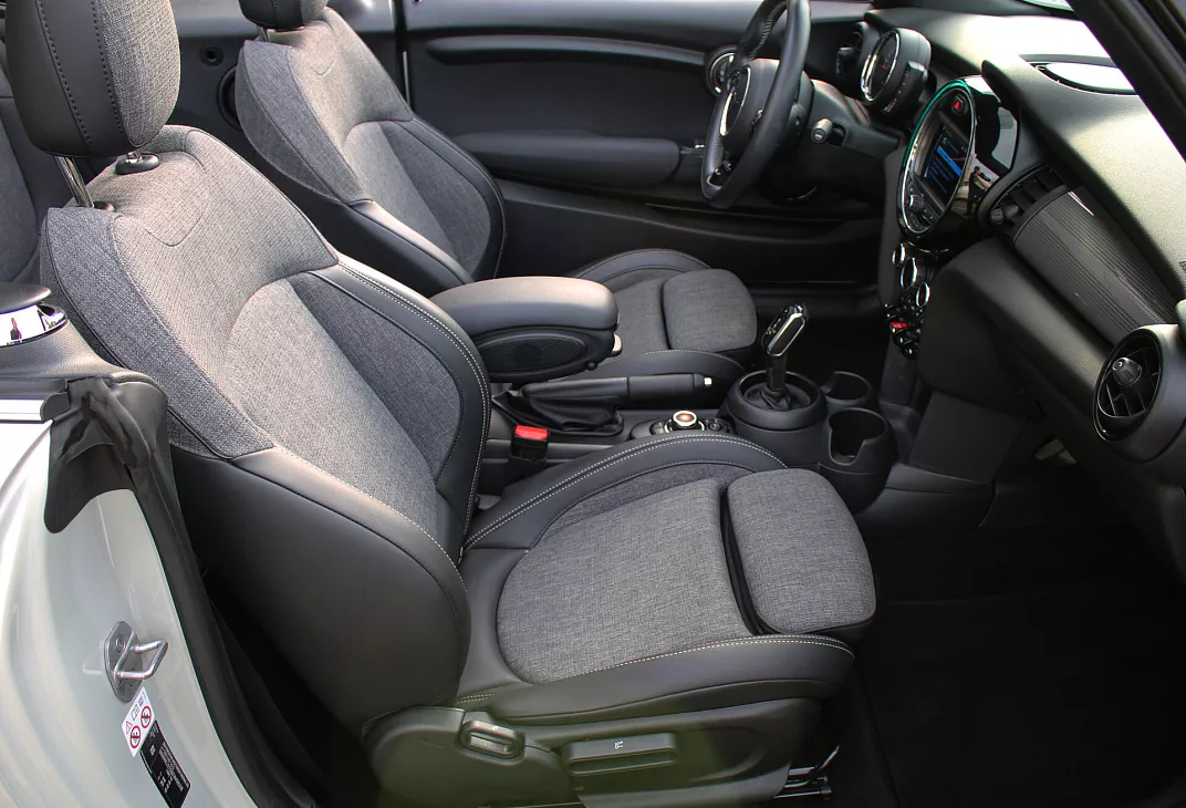 Mini Cabrio III Рестайлинг 2020 года — это кабриолет, который сочетает в себе практичность и функциональность. Серый кузов и характерные черты дизайна делают автомобиль заметным на дороге, не перегружая внешний вид лишними деталями.